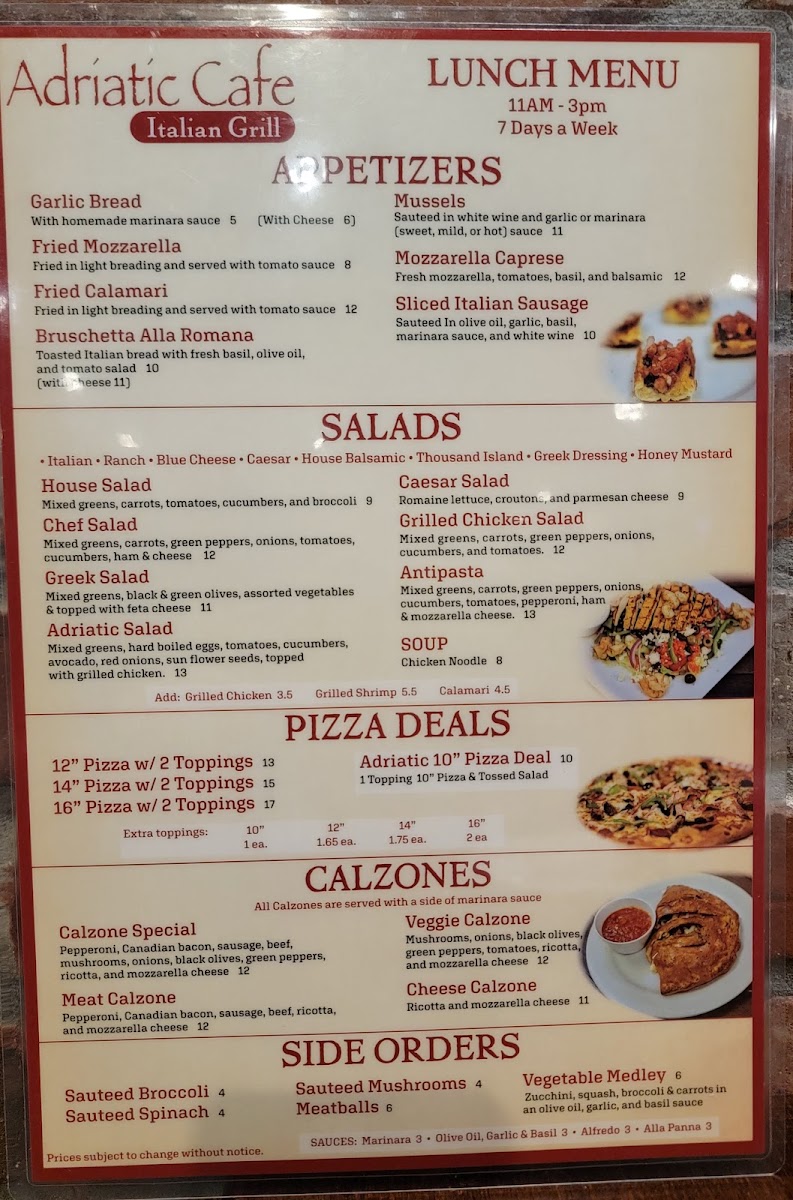 The menu at Adriatic Cafe is a delightful exploration of classic Italian cuisine. Start your culinary journey with their Chicken Noodle Soup, a comforting classic at only $8. This is not your average soup; it’s crafted to perfection, showcasing fresh ingredients that bring warmth to your soul. If you’re in the mood for something more decadent, don’t miss the lobster ravioli or the rich, creamy chicken Alfredo. For those craving a bit of sweetness in their savory, the vodka pasta is indulgently creamy, delivering flavors that will make your taste buds dance. Heroes of the kitchen ensure that every dish is vibrant and full of life, just like the spirit of Italian dining.